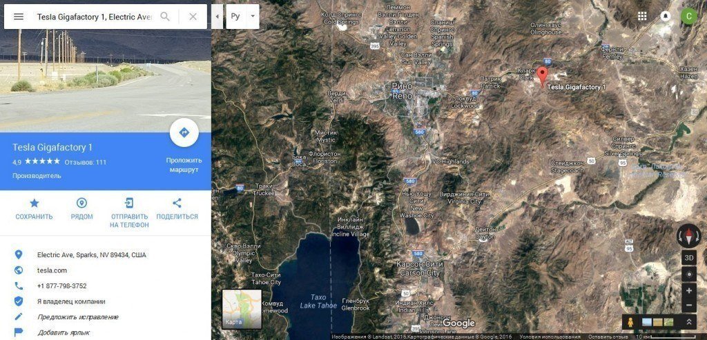 Фабрика находится в штате Невада, США, неподалеку от города Рино (Reno) и озера Тахо
