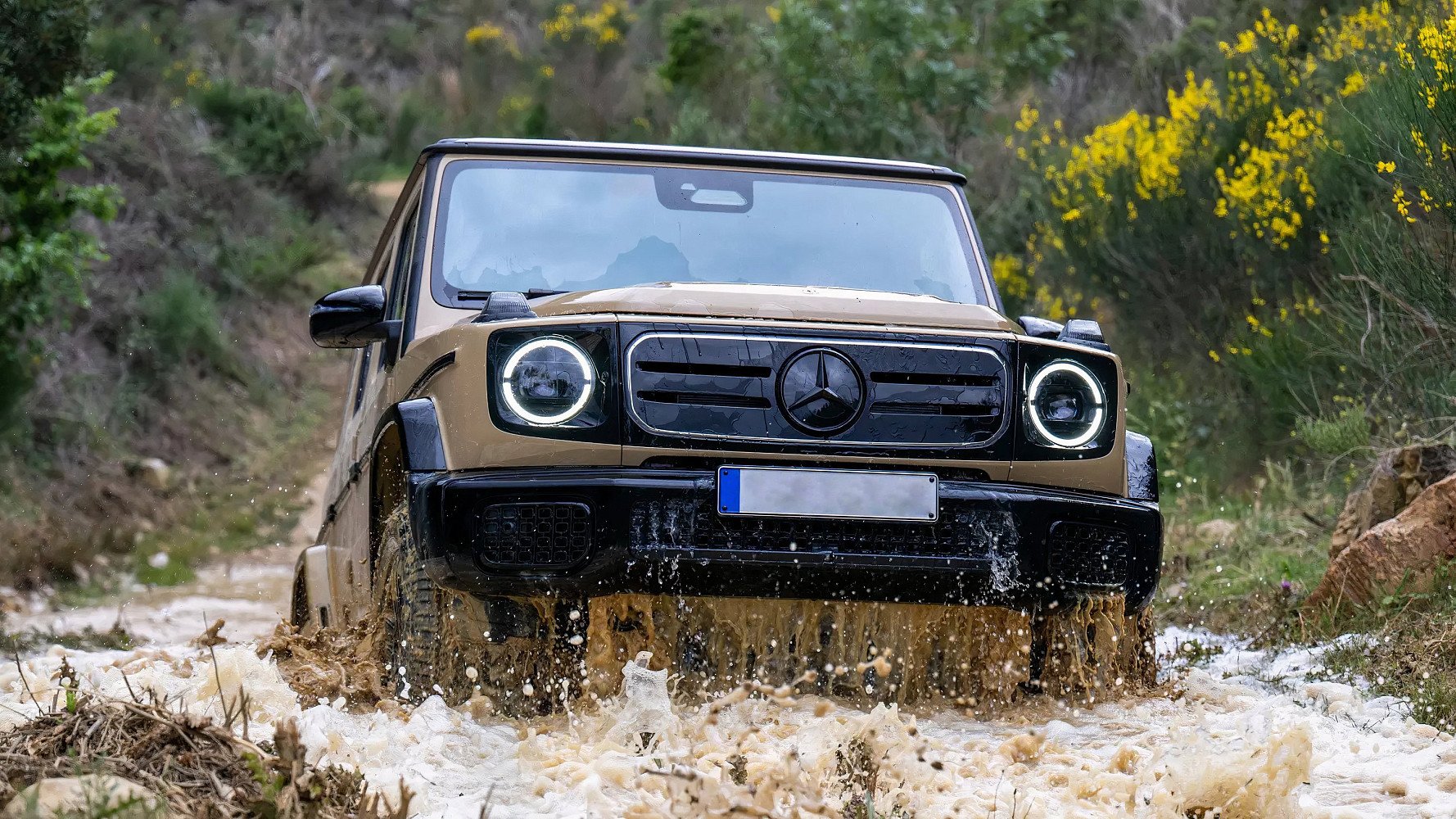 Электрическая природа дала G 580 неожиданное преимущество в воде. Максимальная глубина брода — 850 мм. Это на 150 мм больше, чем у топливных G-Class (700 мм). Причина проста: нет воздухозаборника и выхлопной системы. Батарея и моторы полностью герметичны.