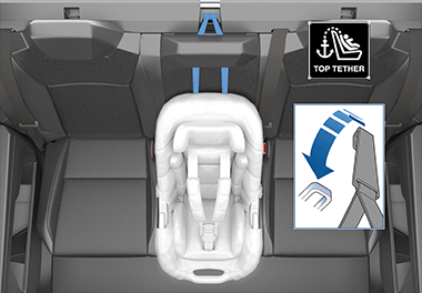 - Прикрепите верхний(е) страховочный(е) ремень(и) детского кресла (если имеются) в соответствии с требованиями производителя детского кресла.
