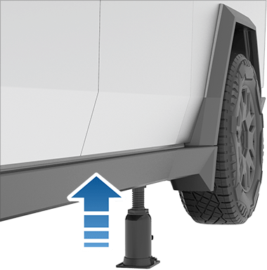 - Убедитесь, что Cybertruck находится на ровной, устойчивой и безопасной площадке, где достаточно места для установки домкрата.