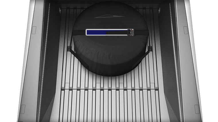 - Поместите запасное колесо (в виниловом чехле) к передней стенке по центру грузовой платформы.