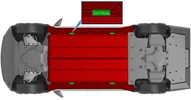ЗАПРЕЩАЕТСЯ поднимать автомобиль под батареей или боковыми порогами. Размещайте лапы подъемника только под специально обозначенными точками. Указанные места являются единственными одобренными точками подъема для Cybertruck. Подъем в любых других местах может привести к повреждениям. Повреждения, вызванные неправильным подъемом Cybertruck, не покрываются гарантией.