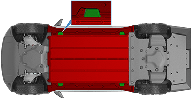 - Установите домкрат под точку подъема автомобиля (показана зеленым цветом), соответствующую месту проведения работ.
