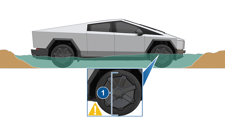 Вы несете ответственность за оценку глубины любого водоема перед въездом. Повреждения или попадание воды в Cybertruck в результате езды по воде не покрываются гарантией.
