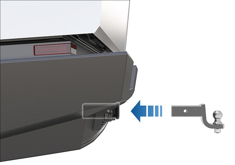 Шаровое крепление необходимо приобретать отдельно в зависимости от ваших потребностей в буксировке. Приемник сцепного устройства Cybertruck поддерживает шаровое крепление диаметром 5 см. Для получения дополнительной информации следуйте инструкциям производителя шарового крепления.