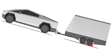 - С присоединенным прицепом Cybertruck стоит горизонтально. Если передняя часть автомобиля поднята, а задняя опущена, проверьте, не превышена ли максимальная масса буксируемого прицепа и давление на сцепное устройство.