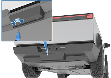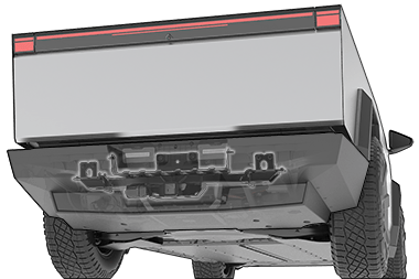 Сцепное устройство Cybertruck расположено за задней панелью кузова, под задним бортом. Ваш автомобиль не оснащен шаровым креплением, которое необходимо приобретать отдельно в зависимости от ваших потребностей в буксировке.