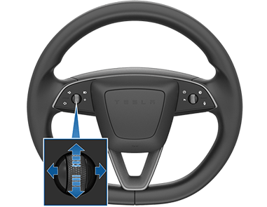 Для регулировки наружных зеркал коснитесь Controls > Mirrors. Нажмите левую кнопку прокрутки на рулевом колесе, чтобы выбрать, какое зеркало вы регулируете: Left или Right. Затем используйте левую кнопку прокрутки следующим образом, чтобы отрегулировать выбранное зеркало в нужное положение: