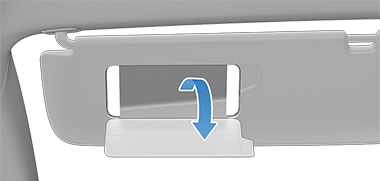 Чтобы открыть и подсветить косметическое зеркало, опустите солнцезащитный козырек, затем используйте язычок, чтобы опустить крышку зеркала. После закрытия крышки зеркала свет выключается.