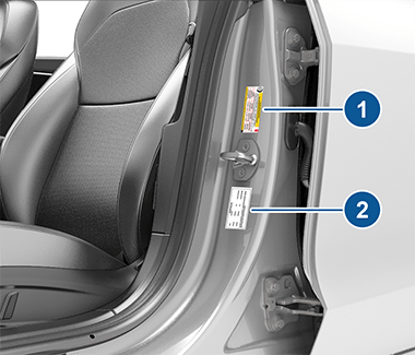 Обе наклейки видны на дверной стойке при открытой передней двери.
