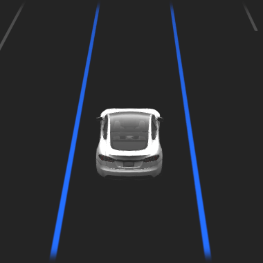 Если не удается обнаружить дорожную разметку, авторуление может определять полосу движения на основе впереди идущего автомобиля. В большинстве случаев авторуление пытается центрировать Model S в полосе движения. Однако могут быть ситуации, в которых авторуление следует по траектории, смещенной от центра полосы (например, при обнаружении ограждений).