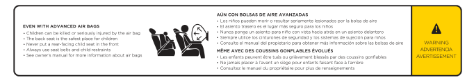 Предупреждение: Согласно статистике ДТП, дети находятся в большей безопасности, когда они правильно пристегнуты на задних сиденьях, а не на передних.
