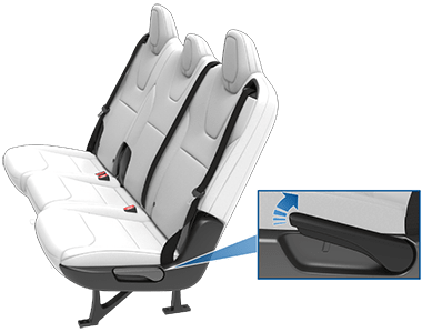 - Когда крайнее сиденье наклоняется вперед после нажатия кнопки, его спинка возвращается в переднее положение и может потребовать повторной регулировки для комфорта.