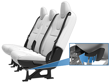 Если ваш автомобиль оснащен монопостовыми сиденьями, кнопка доступа к третьему ряду расположена на спинке каждого крайнего монопостового сиденья во втором ряду. Эта кнопка облегчает пассажирам вход и выход с сидений третьего ряда. Коснитесь Controls > Safety > Third Row Easy Entry и выберите, как вы хотите, чтобы эта кнопка работала:
