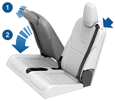 Примечание: Чтобы поднять сиденья, удерживайте кнопку в верхнем внешнем углу сиденья, затем потяните спинку сиденья вверх, пока она не зафиксируется в вертикальном положении. Попробуйте потянуть спинку сиденья вперед, чтобы убедиться, что она зафиксирована.