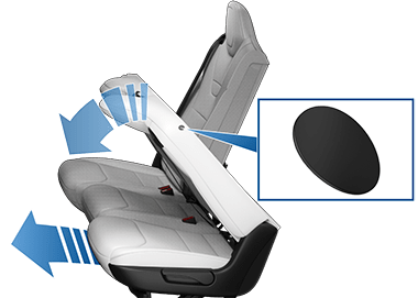 Используйте кнопку в верхней части сиденья для перемещения спинки сиденья вперед/назад.