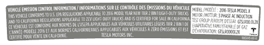 Табличка с информацией о контроле выбросов расположена на внутренней стороне двери багажника.