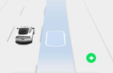 Когда Навигация на Автопилоте отключается, но Авторуление остается активным, прозвучит звуковой сигнал, и визуализация изменится с одной синей линии в полосе движения на две синие линии по обеим сторонам полосы.