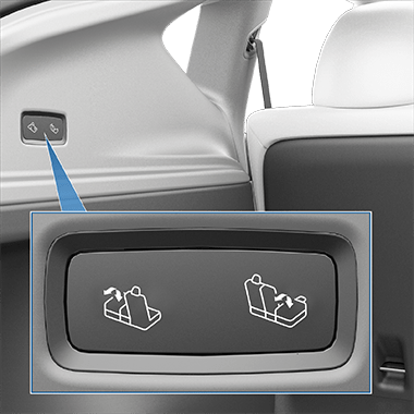 Вы также можете полностью сложить спинки сидений второго ряда, нажав соответствующий переключатель, расположенный на левой стороне заднего багажника. Нажмите переключатель еще раз, чтобы разложить спинку сиденья.