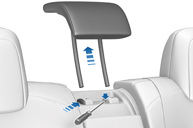 - Вставьте короткий плоский предмет (например, маленькую плоскую отвертку) в отверстие у основания противоположной стойки и потяните подголовник вверх.
