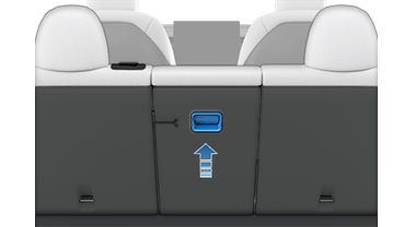 Чтобы можно было перевозить длинные предметы (например, лыжи) в задней части Model Y, спинку центрального сиденья также можно сложить вперед независимо. Потяните за ручку на задней стороне спинки сиденья, чтобы отсоединить ее, затем потяните вперед.