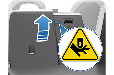 ВНИМАНИЕ: При складывании центрального сиденья держите части тела (руки, пальцы и т. д.) и предметы подальше от краев задних сидений. Сиденье может с силой откинуться вперед и нанести травму или повредить имущество.