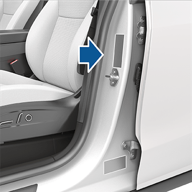 - Обратитесь к этикетке с информацией о шинах и нагрузке, расположенной на центральной стойке водительской двери, чтобы узнать целевое давление в шинах.
