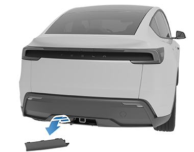 - На Model Y имеются 2 зажима, которые крепят защитную крышку к автомобилю. Используйте тонкий предмет, например плоскую отвертку, чтобы повернуть и открыть зажимы. Снимите защитную крышку и храните ее в безопасном месте.