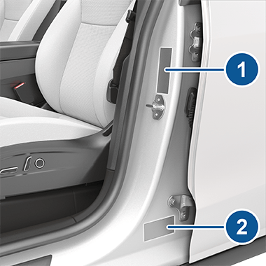 Обе таблички видны на стойке передней двери со стороны водителя, когда она открыта.