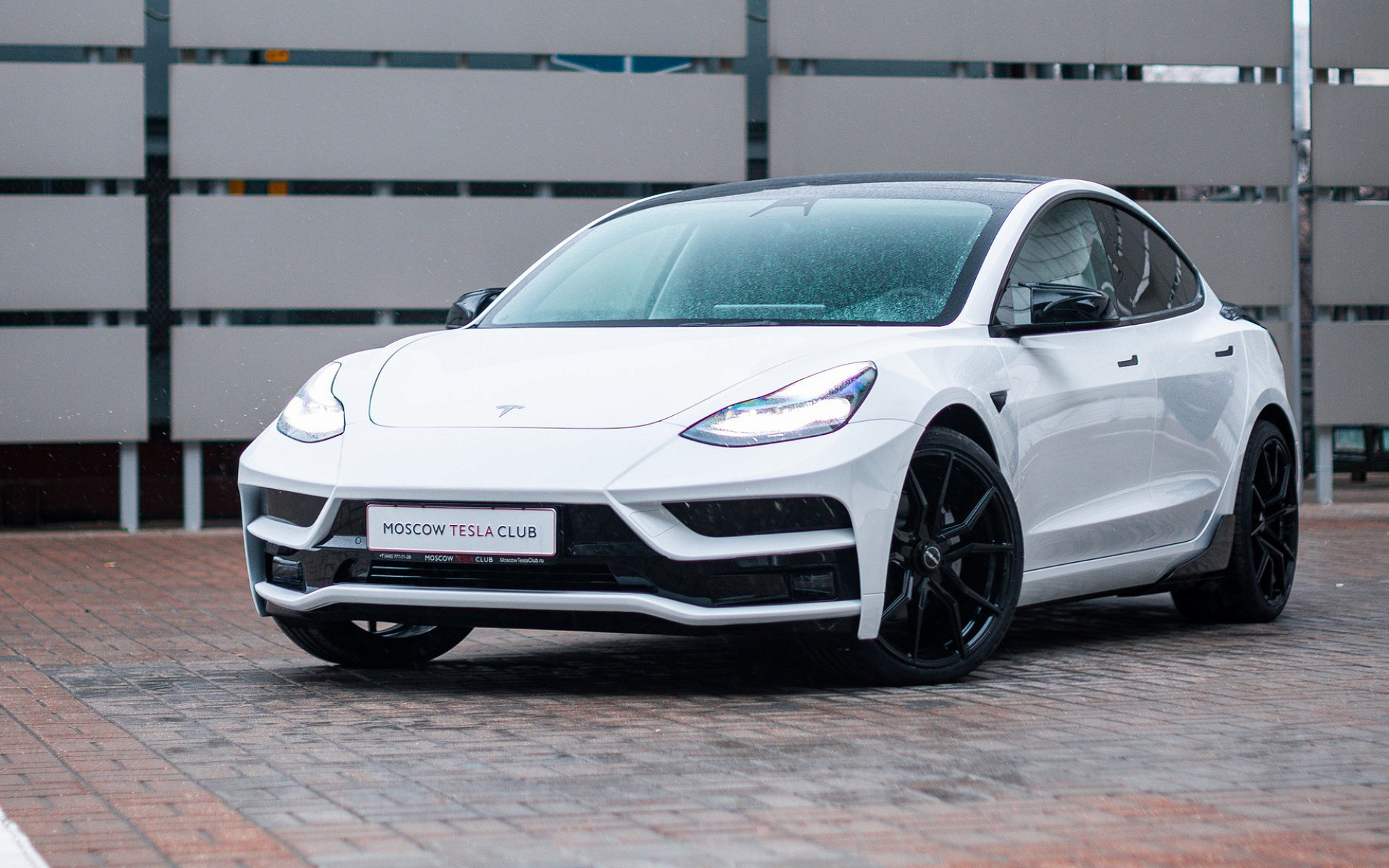 Обои Tesla Model 3 в тюнинге вид спереди